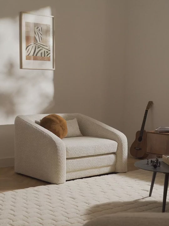 Upholstered in teddy bouclé (100% polyester), it offers a luxurious texture while remaining durable and easy to maintain. The Molty Pearl foam used inside provides premium comfort and support, with a life expectancy of 10 to 15 years—ensuring long-term durability.